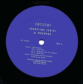 The rear has a sketch of Moondog, his shoe & walking stick. These appear to be just a quick drawing and lack the professional look of the cover art.