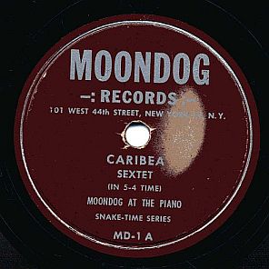 Side A: Caribea, Sextet (In 5-4 Time), Moondog at the piano Side B: Oo Debut, Moondog plays Oo and Trimbas (In 7-4 Time) Robert Scotto, Moondog, page 139: "...; a single produced somewhere around 1955 and privately sold on the streets on the Moondog label, containing "Caribea" and "Oo Debut", was transcribed onto Prestige I." |