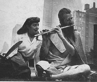 Moondog and his wife Suzuko on a rooftop