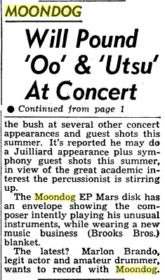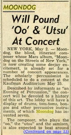 Moondog Will Pound 'Oo' & 'Utsu' At Concert
