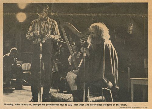 (in: Moondog Gets a Harp and A Very Warm Feeling, by Emily C. Bucher, Capital Times, September 20, 1972) |
